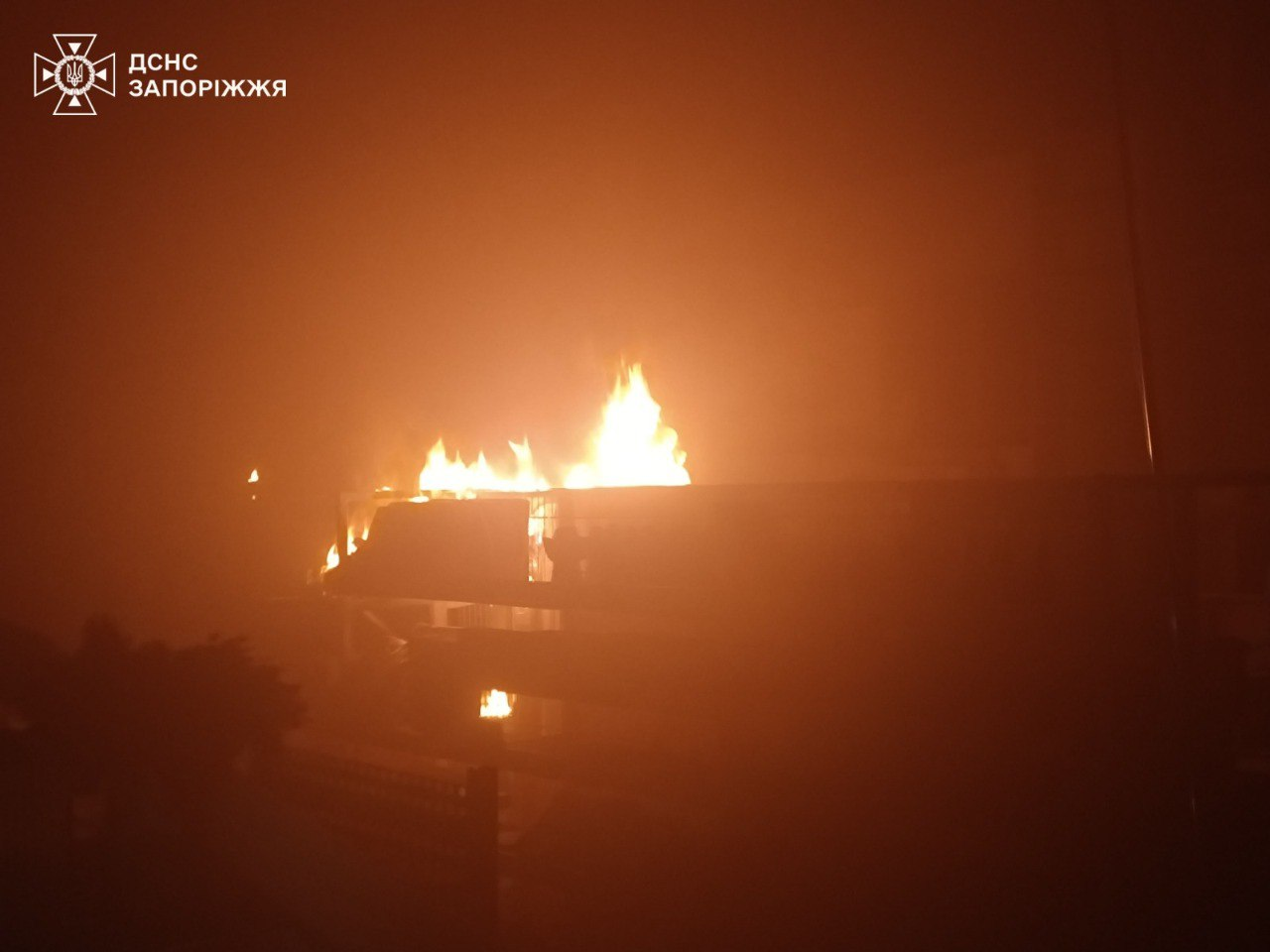 У ДСНС зазначили, що ворог атакував Запоріжжя двома хвилями. Перша хвиля сталася пізно ввечері 1 січня. Виникло три пожежі: загорілися нежитлова прибудова до багатоповерхівки та дві господарчі споруди. Уламками пошкоджено житлові будинки, дорожнє покриття та автомобілі.