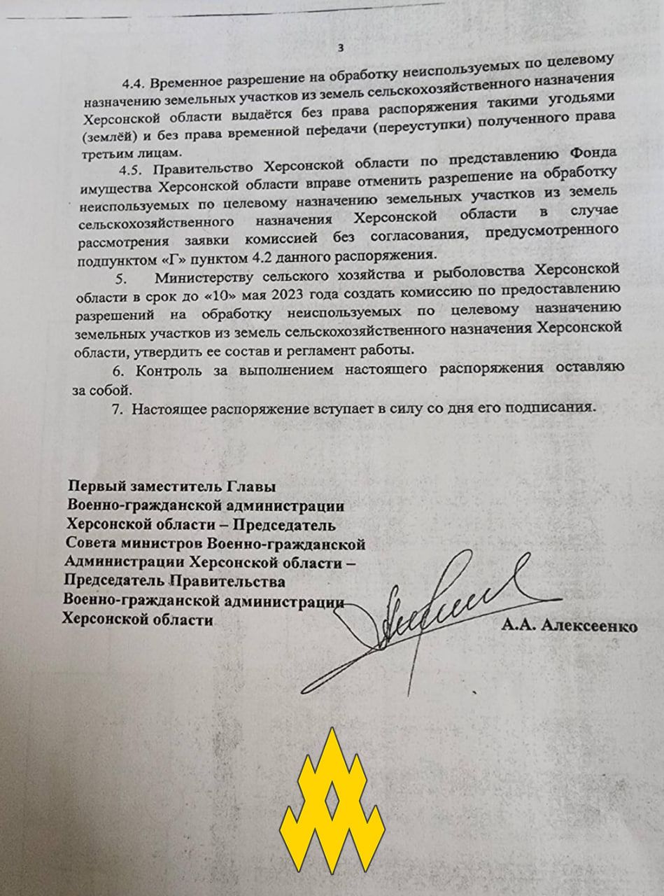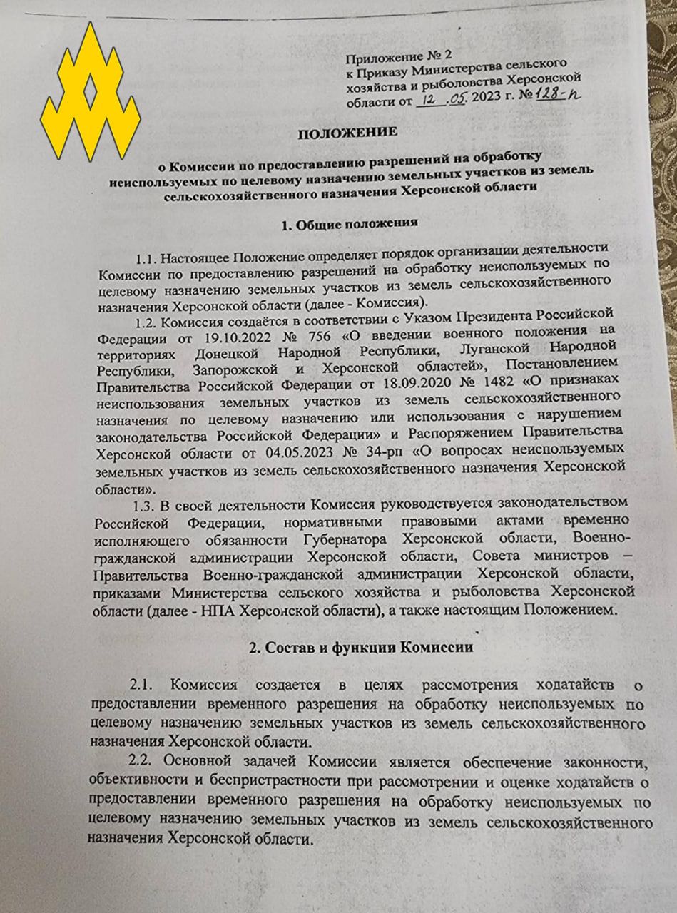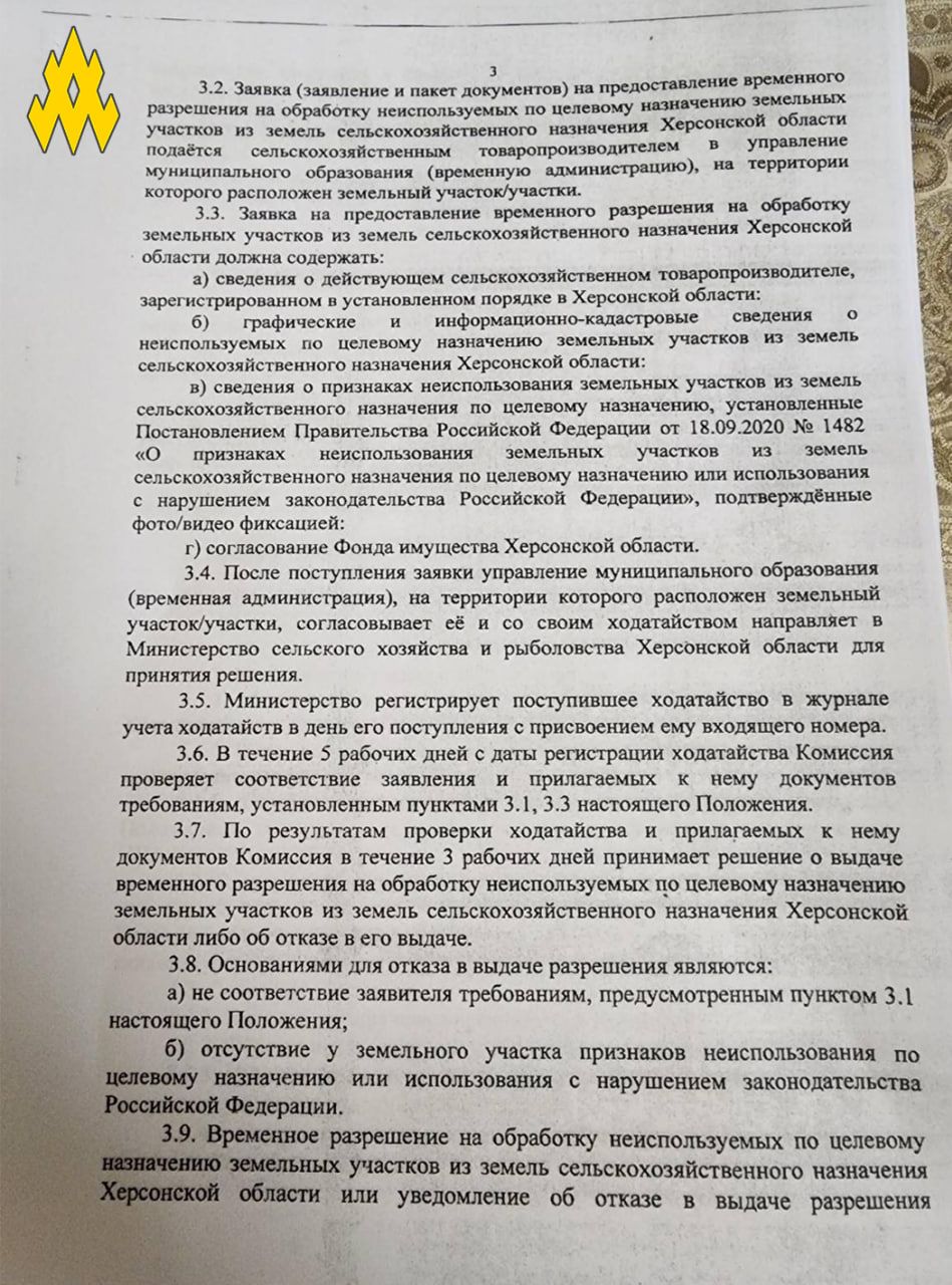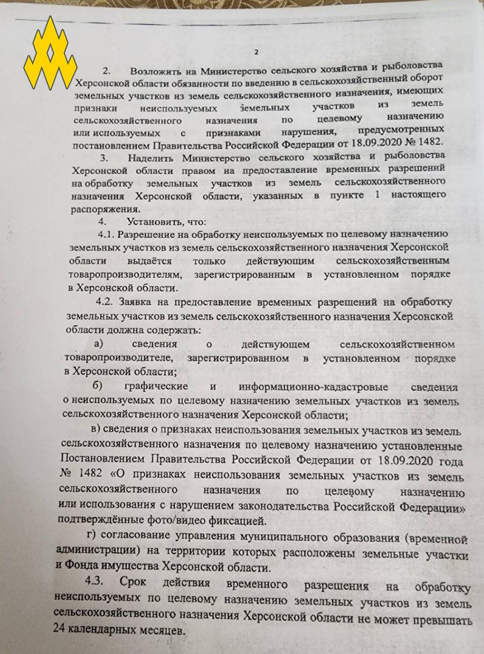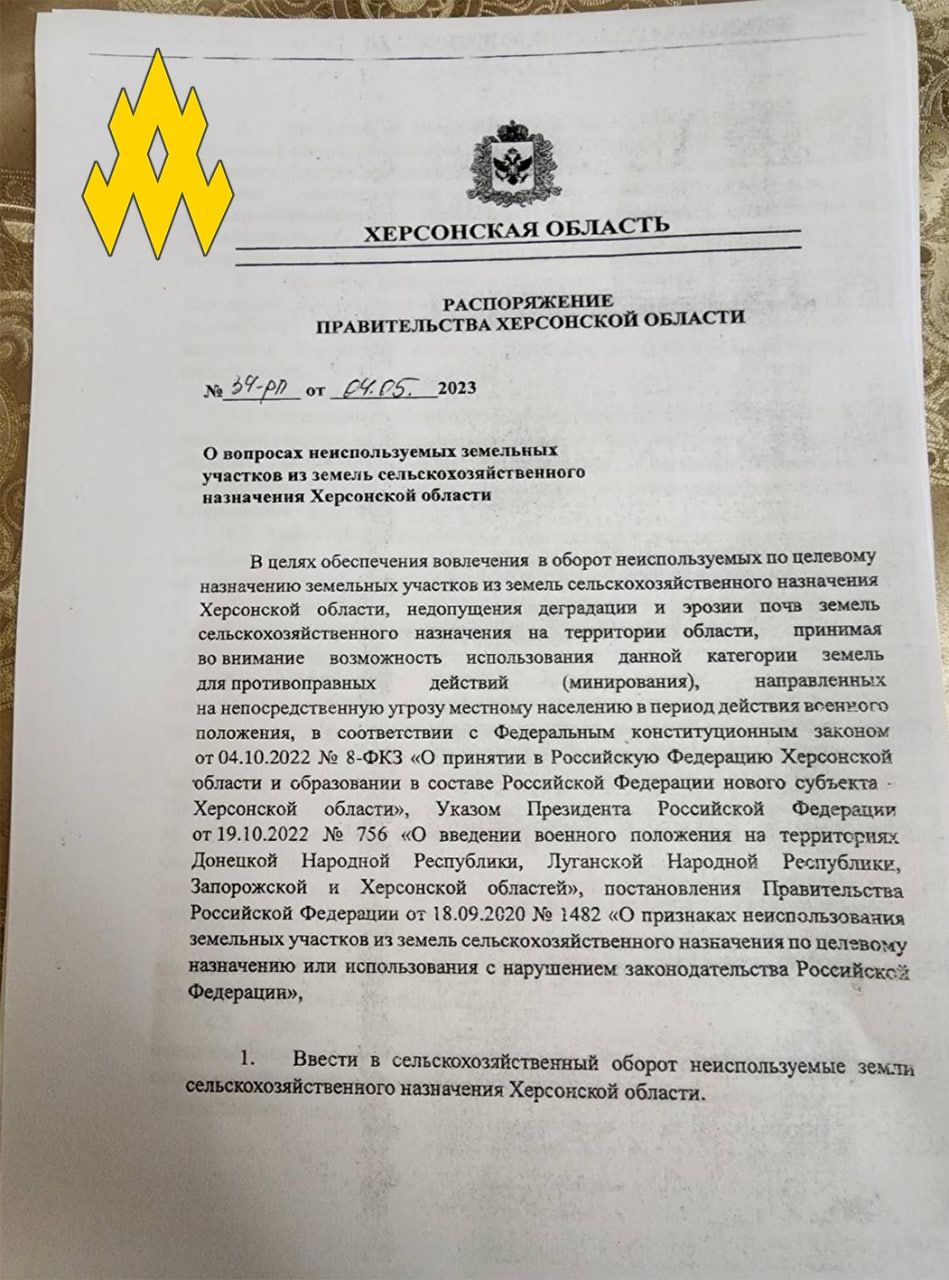 Партизани наголошують, що на окупованій частині Херсонської області російські загарбники відбирають землі у місцевих жителів, які виїхали з регіону. Крім цього, окупанти забирають землі й в тих, хто відмовляється отримувати російський паспорт.