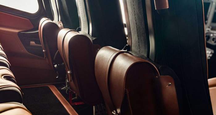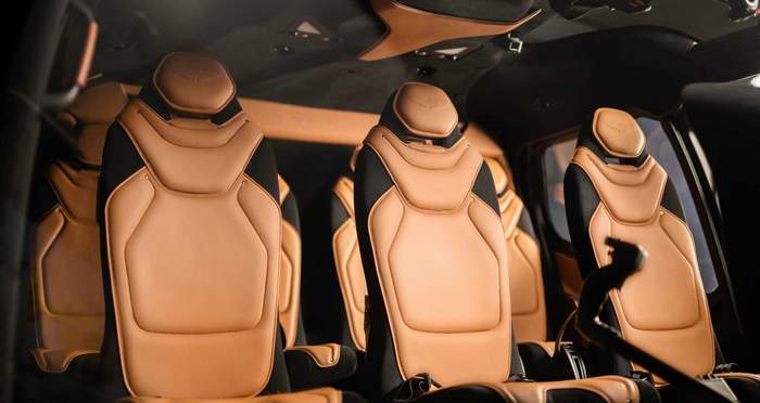 Матеріали оздоблення салону гвинтокрила такі ж, як в автомобілях Aston Martin. На спинки передніх крісел нанесена декоративна перфорація, яку можна зустріти в DB11, дверні карти обшиті натуральною шкірою вищого ґатунку, по усій кабіні розкидані логотипи Aston Martin, а на панелі приладів встановлена спеціальна табличка з логотипами партнерів, номером вертольота в серії, а також ім'ям власника (наноситься за бажанням замовника).