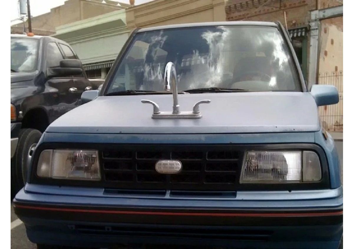 А фігурка на капоті, популярна в минулому столітті ознака розкішного автомобіля, називається “маскот”. І цей Suzuki Vitara однозначно має найбільш незвичайний маскот у світі, хоча про розкіш мова тут не йде.