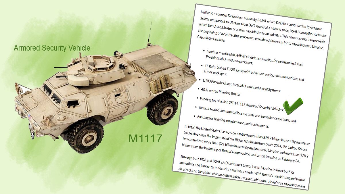 А ось у четвертій позиції того траншу значилися бронетранспортери M1117 у кількості 250 од. Згодом вони ніде в повідомленнях не фігурували, фотознімки та відео про них не публікувалися.