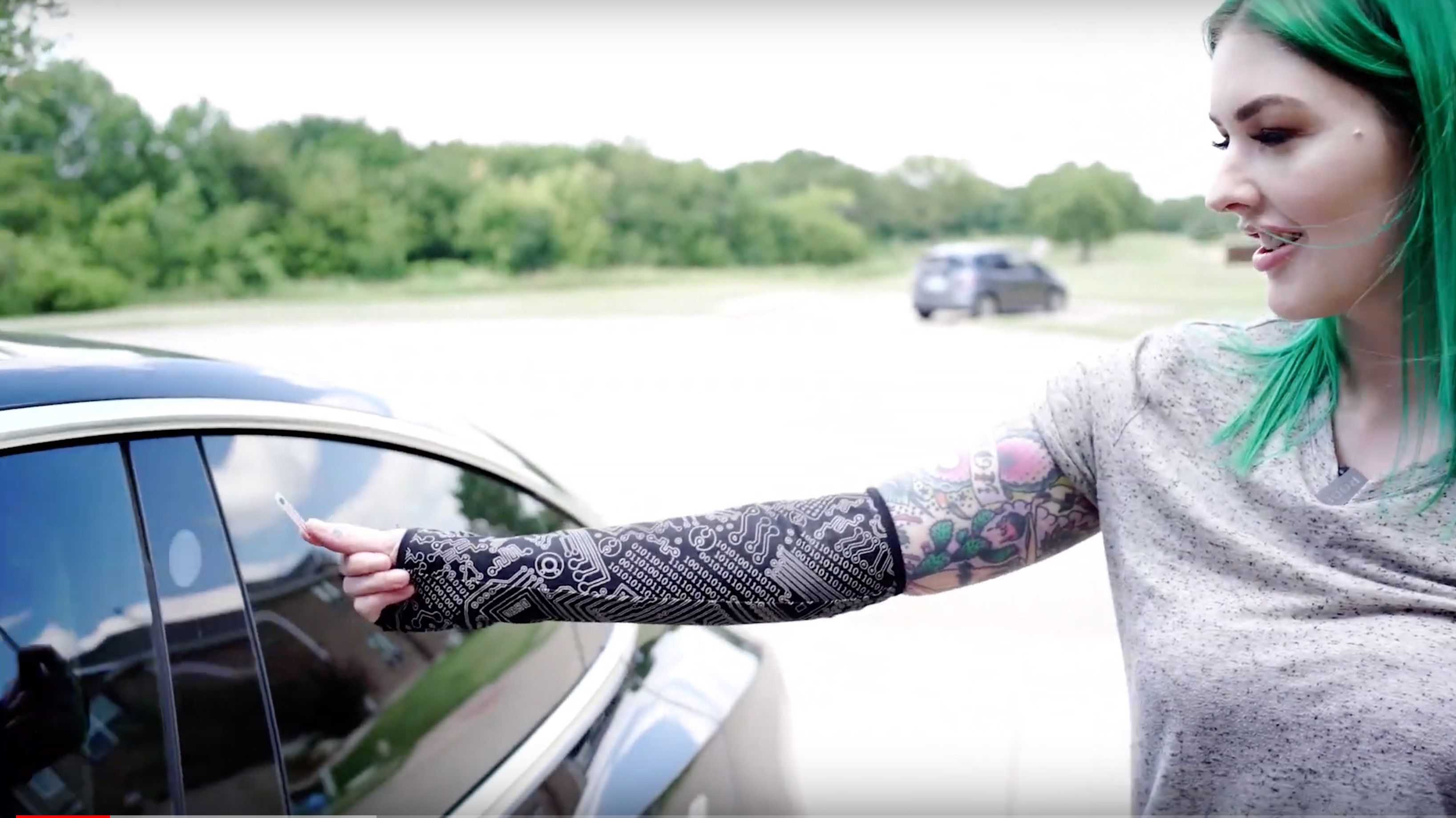 Фактично, ця молода жінка уособлює нове покоління людей з інтегрованою в тіло електронікою. Радіочіп у її руці робить те, що ми тільки звикаємо виконувати за допомогою смартфонів.
