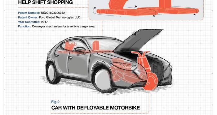 Протягом 2018 року лідерами за кількістю патентів в автомобільній індустрії стали Toyota та Ford – обидві марки зареєстрували більш як 2 тисячі заявок. З відставанням у півтисячі патентів на третьому місці списпку опинилась марка Hyundai. Деякі з цих розробок в майбутньому з’являться на серійних автомобілях або ж серед запчастин на ринку аксесуарів. Інші мають туманні перспективни і залежать від багатьох “якщо”. Та є окрема категорія винаходів, для опису яких краще за все підходить слово “дивний”. Можна лише сподіватись, що вони ніколи не з’являться на ринку. Ось кілька прикладів винаходів на грані безумства: