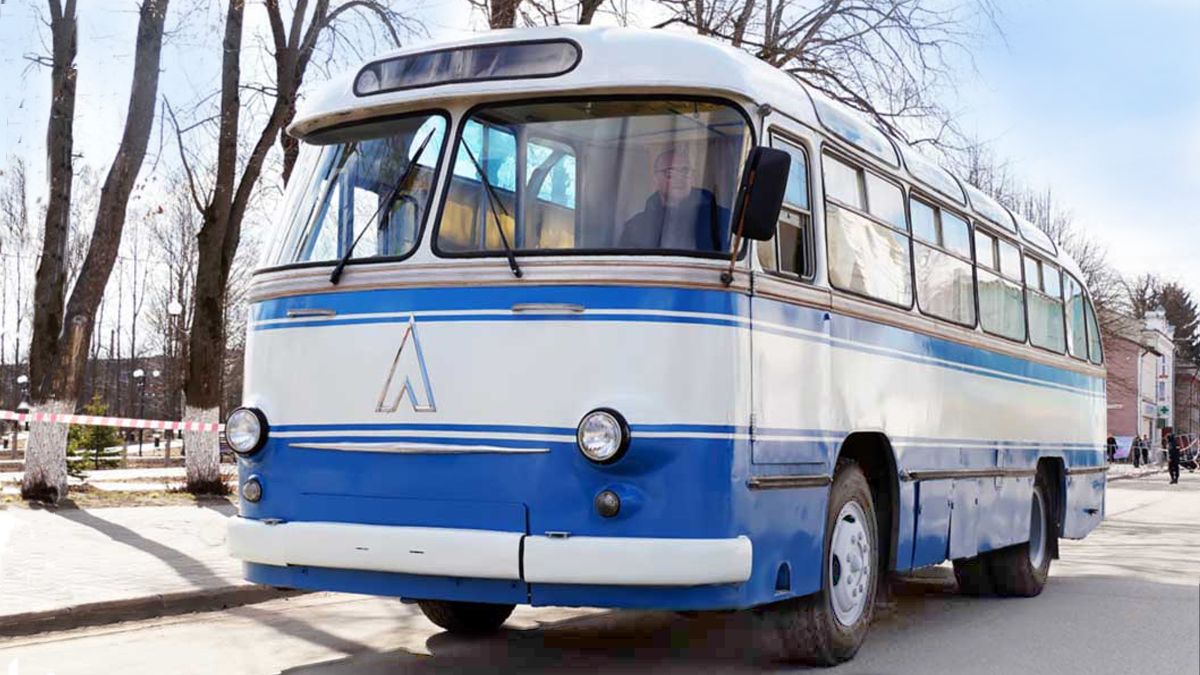 Це не оригінальний автобус ЛАЗ-695Б для доставки космонавтів до стартового майданчика на Байконурі, а зроблена для космічного музею його точна копія на базі аналогічної моделі. Фото: auto.tcell.tj