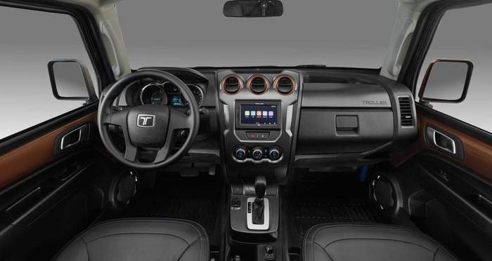 Салон Troller TX4 – під стать позашляховику, аскетичний та без зайвих деталей. Зі зручностей: двозонний автоматичний клімат-контроль, мультимедійна система з 6,75-дюймовим екраном та підтримкою Android Auto і Apple CarPlay.