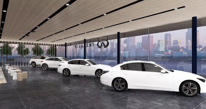 Майбутні шоу-руми Infiniti матимуть виразний глибокий карниз уздовж лінії даху, який цілеспрямовано створює тінь і контролює пряме сонячне світло у виставковому залі. Всередині виставковий зал було переосмислено, щоб збільшити відчуття простору та забезпечити клієнтам постійну оглядовість. Нові приміщення відкриються вже цього місяця в кількох містах США, у Мексиці та в Катарі.