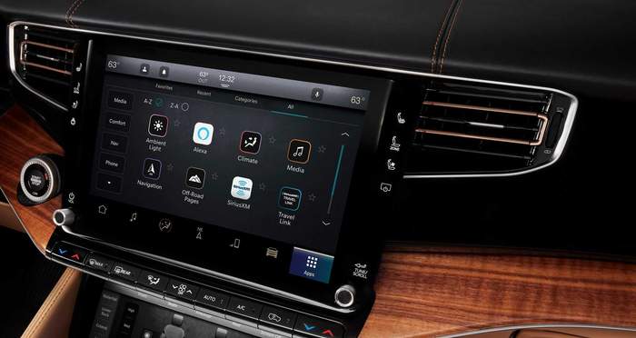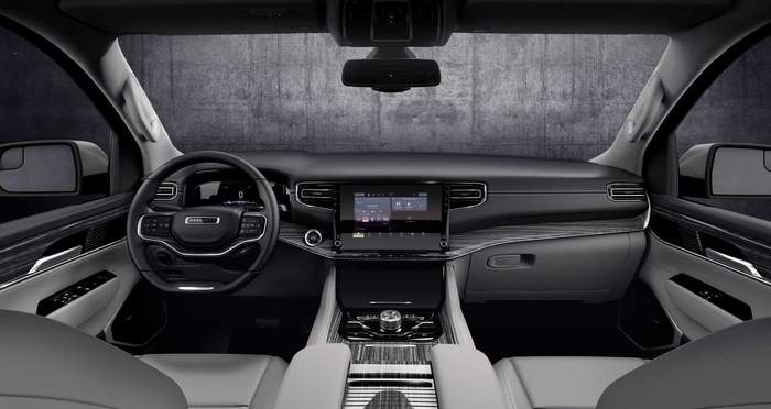 Інтер’єр вже в базовому виконанні оздоблюється шкірою наппа, має цифрову панель приладів на 10,3 дюйма, 10,1-дюймовий тачскрін мультимедійної системи Uconnect 5, а за доплату ще один – 10,3-дюймовий, для управління кліматичною системою і іншими функціями комфорту. Диван другого ряду можна замінити роздільними кріслами. Всього передбачено три комплектації: Series I, II і III. Топова версія, серед іншого, пропонує акустичну систему McIntosh з 19 динаміками і 950-ватним підсилювачем.