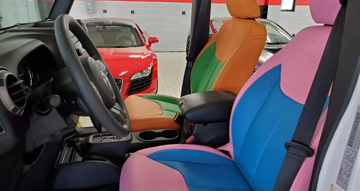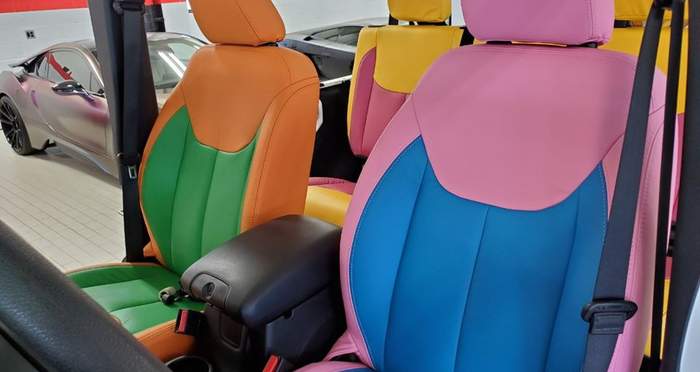 Якщо не брати до уваги 32-дюймові диски Forgiato, тюнінг на 100 тисяч не дуже помітний. Особливо, через барвистий кузов.