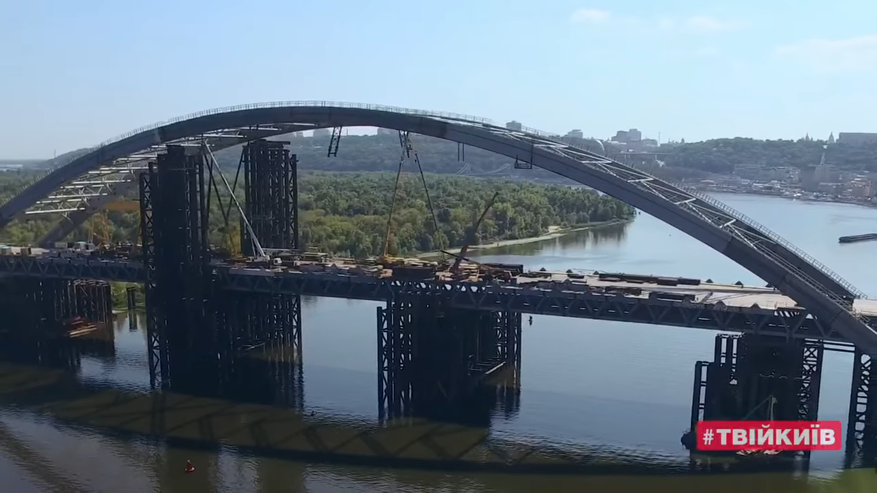 Наразі будівельники демонтували тимчасові опори, підняли всі в'язі та з'єднали арки між собою. Дві величезні арки є головною особливістю цього мосту, завдяки яким він може стати одним з найбільших арочних мостів в Європі. Коли буде завершений.