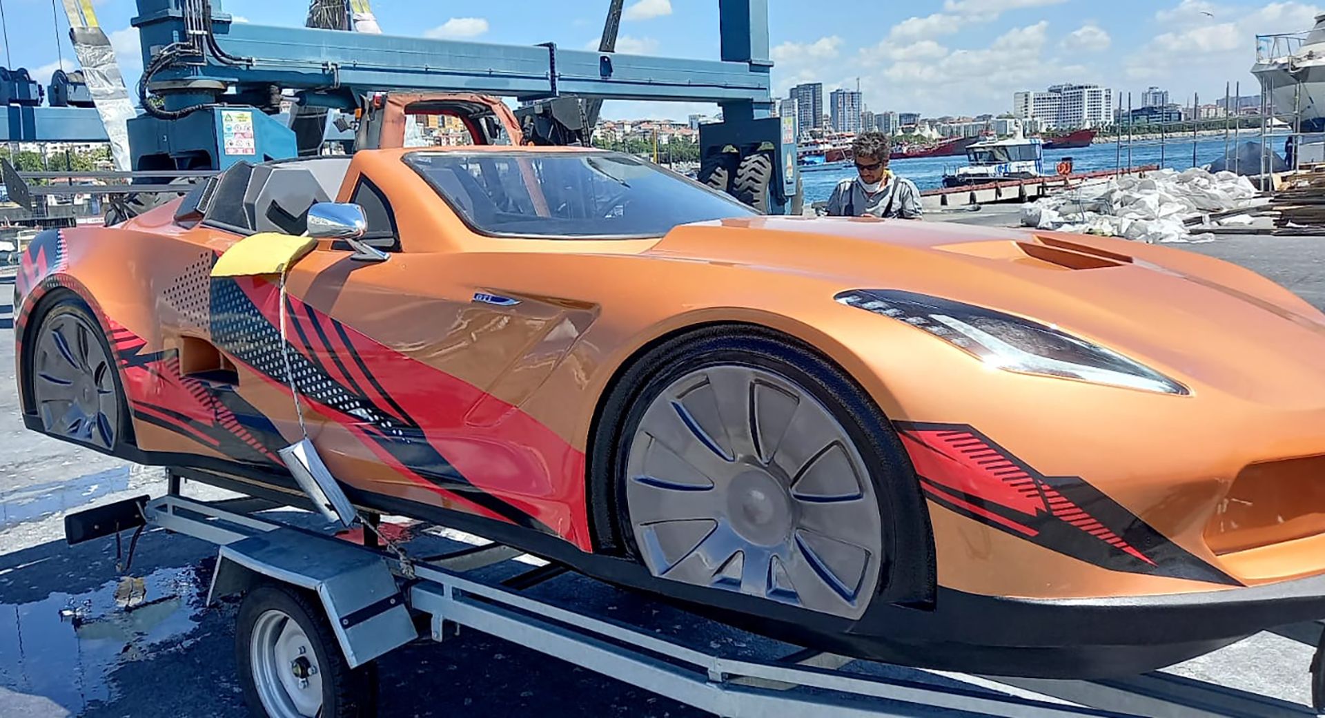 Схоже, коли відкриються турецькі пляжі, на них з’явиться новий атракціон – катання на 260-сильних спорткарах по воді. Фірма JetCarTurkiye стилізує свої човни під автомобілі і особливо вподобала форми Chevrolet Corvette C7. Автомобілеподібні човни оснащені водометними двигунами Yamaha від гідроциклів.