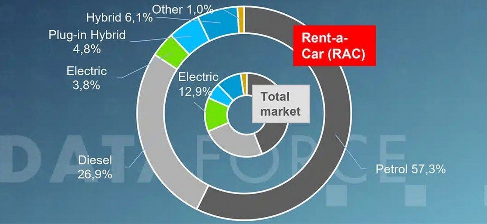Однак найбільша частка RAC на ринку нових авто в Іспанії, де кожен четвертий реалізований автомобіль потрапив на ринок оренди (152 тис. од.). Водночас спостерігається суттєве зменшення попиту з боку RAC на електромобілі. З початку року парк RAC поповнили лише 30 тисяч електромобілів, що на 10 тис од. менше, ніж торік. Їх частка в закупівлях RAC знизилася з 6,4% до 3,8%.