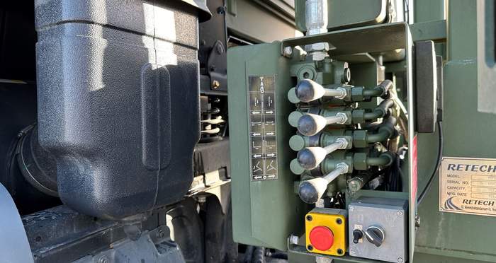 Розширена таким чином функціональна палітра відразу ж набула подвійного призначення. Якщо у цивільній версії ця машина тягає ТБО, металобрухт, будівельне сміття та виробничі відходи, то додана більш відома в народі система "павук" дозволяє транспортувати морські 20-футові контейнери. Це відразу привернуло увагу наших військових.