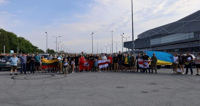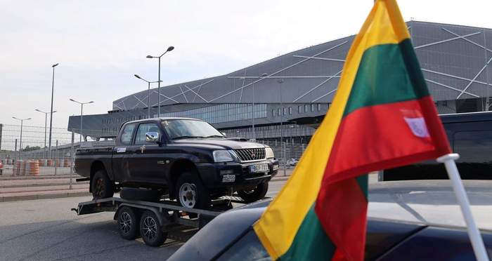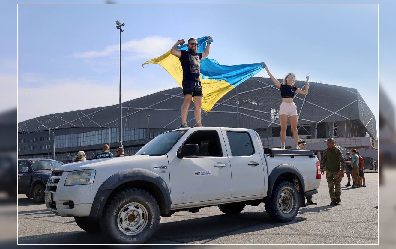 Литовці підняли над привезеними автівками для ЗСУ український прапор