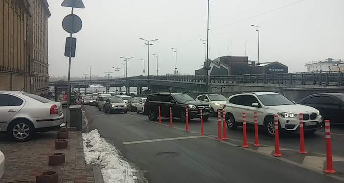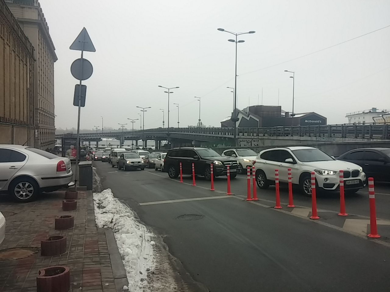 Зараз водії з правого ряду змушені перестоюватись в середній перед перехрестям. Це виключає порушення правил, але не спричиняє ще більші заторні явища. В години пік затри спостерігаються на вул. Набережно-Хрещатицькій, з якої авто повертають на Боричів узвіз.