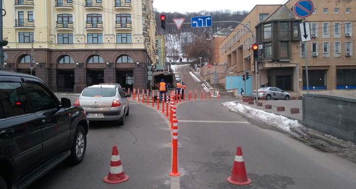 Наразі по вулиці Боричів узвіз в напрямку від Набережного шосе три смуги руху, з яких дві смуги – для подальшого руху на Володимирський узвіз, і одна – направо, на вулицю Сагайдачного. Однак у години пік окремі водії здійснювали вказаний поворот наліво з крайньої правої смуги – і на перехресті намагались повернутися на смугу руху на Володимирський узвіз. Враховуючи, що по Володимирському узвозу наявні дві смуги руху в бік Хрещатика – це спричиняє конфліктні та аварійно-небезпечні ситуації і, відповідно, заторові явища.
