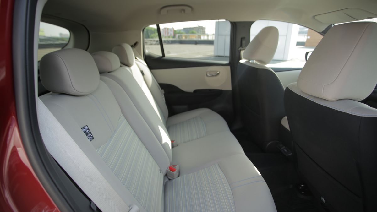 З точки зору запасу місця Leaf виглядає доволі просторим хетчбеком. На задньому ряду місця вистачає, хіба що великі черевики не поміщаються під передніми кріслами. А передні крісла широкі і налаштовують на комфортний стиль їзди. Все гаразд у Nissan і з практичністю: під кришкою багажника 435 літрів об’єму.