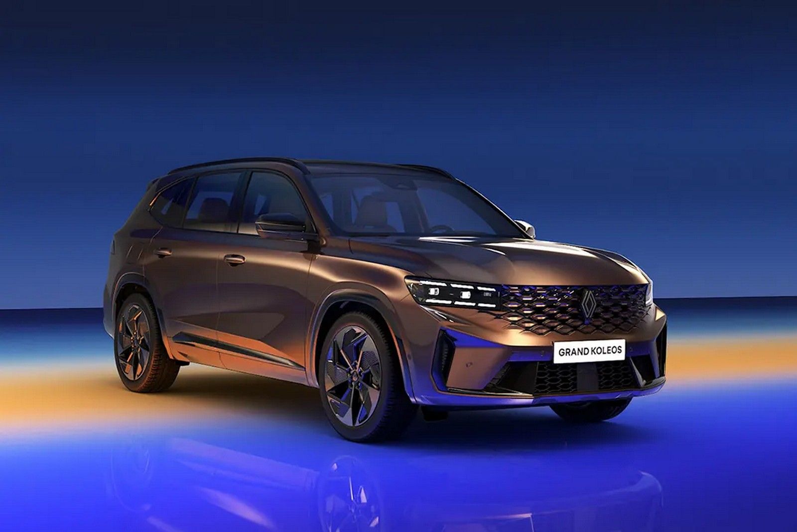 За основу для Renault Grand Koleos взяли модель Geely Xingyue L, яка на експортних ринках відома як Geely Monjaro. При цьому Grand Koleos має свій дизайн екстер’єру. Кросовер отримав оригінальну решітку радіатора та бампери, перероблені віконця у задніх стійках даху та ліхтарі. До того ж задній номерний знак перенесли з багажних дверей на бампер. Фішки топверсії Esprit Alpine – акценти синього кольору, чорний дах та 20-дюймові колеса.