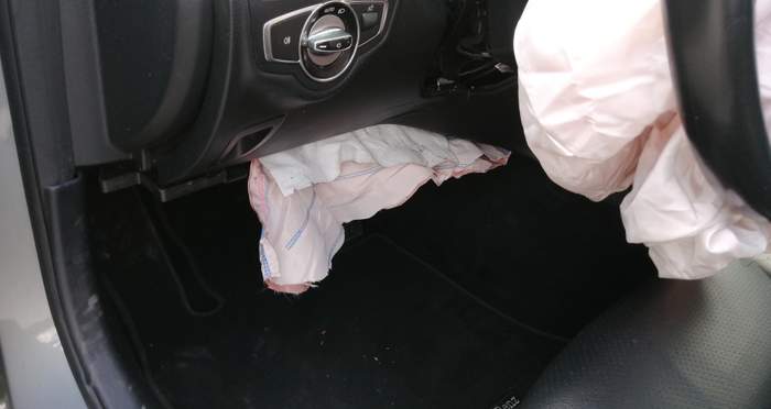 Зокрема, під час відновлення автомобіля довелось замінити не лише подушки безпеки, але й кількох піропатронів у ременях (3 штуки в кожному), відновити торпеду та перетягнути стелю.