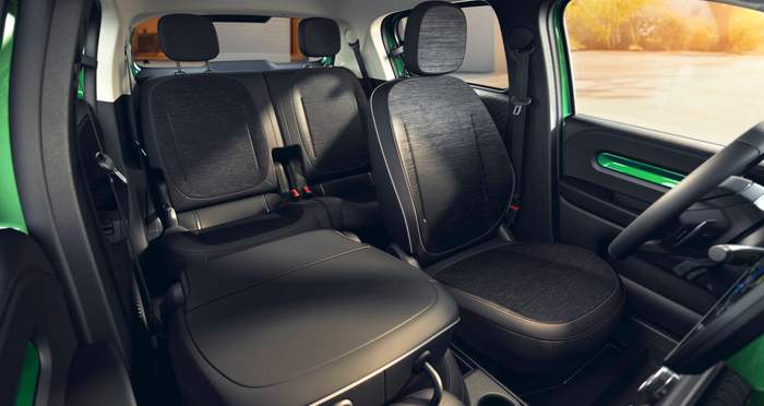 У салоні — два незалежно зсувні задні сидіння, які можна переміщати на 170 мм, щоб регулювати баланс між місцем для ніг і багажником. Останній — справжній рекордсмен у класі: