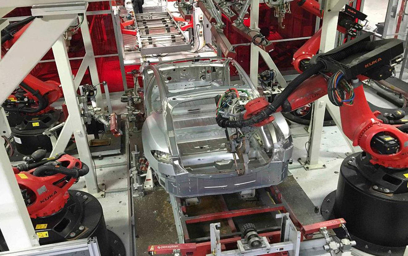 Роботизована лінія на заводі Tesla у Фрімонті Каліфорнія.