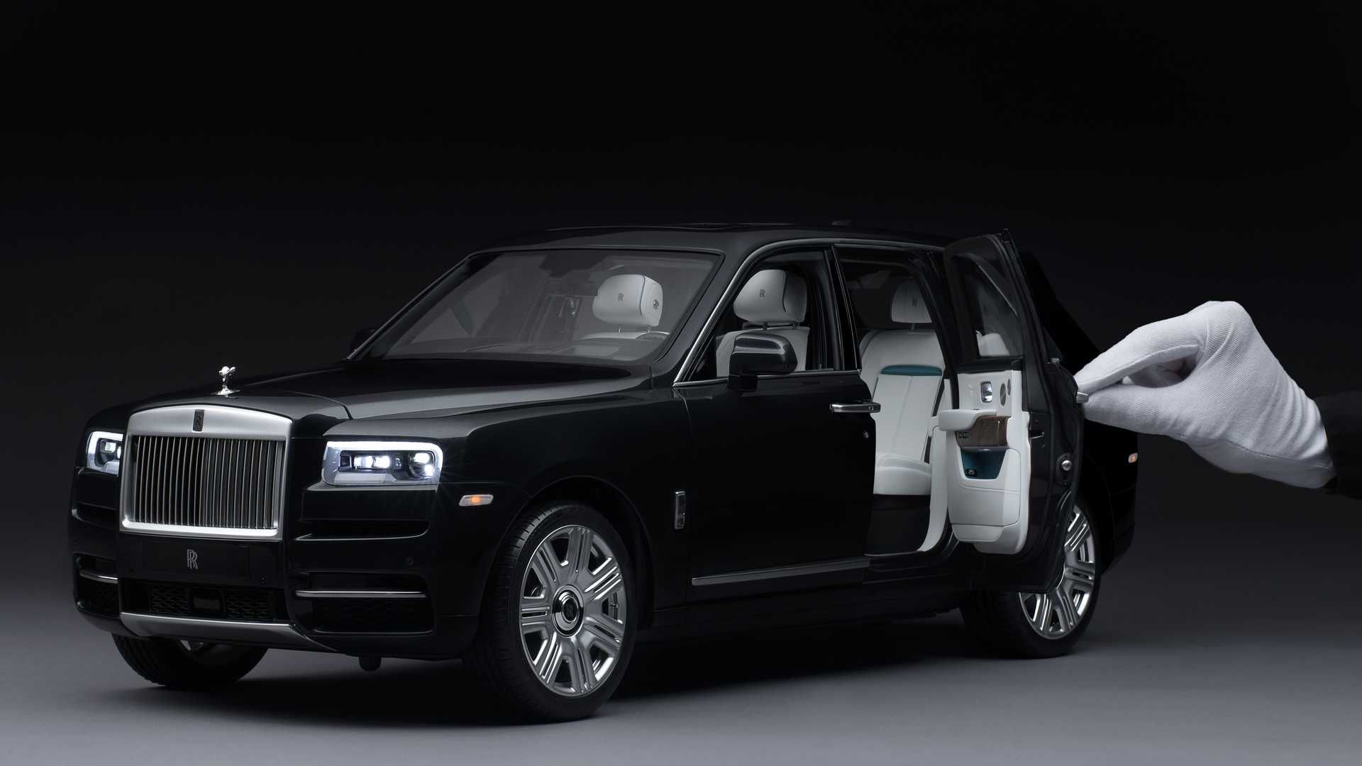 Усі масштабні Cullinan збираються, фарбуються і поліруються вручну, з використанням тих же матеріалів, що і для справжнього автомобіля. У комплекті з моделлю йде щільний футляр на глянцево-чорному подіумі. Можна також прибрати прозору вітрину, щоб відкрити капот, двері, багажне відділення і розглядати мініатюрний автомобіль у всіх деталях.