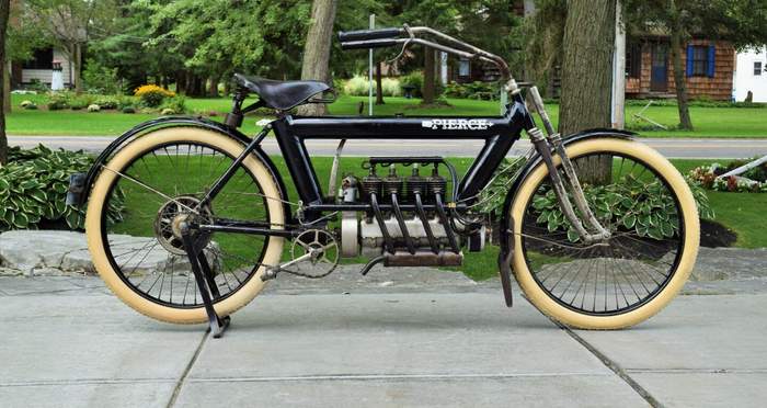 Pierce был первым четырехцилиндровым мотоциклом в США. Он был построен по невероятно высоким стандартам, что в конечном счете сделало его слишком дорогим и привело к банкротству фирмы. Менее 500 мотоциклов было выпущено между 1909 и 1914 годами, до наших дней сохранилось несколько десятков и они редко выставляются на аукцион. Но когда это случается – непременно "снимают сливки".