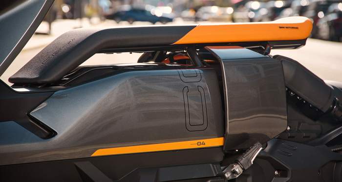 BMW CE 04 оснащен большим 10,25-дюймовым HD-дисплеем, который включает навигацию и подключение к смартфону. Также есть много других приятностей. Пакет премиум-класса придает вышеупомянутые системы торможения/сцепления, а также адаптивную светодиодную фару, подогрев сиденья и дополнительный режим динамического привода для лучшего ускорения.