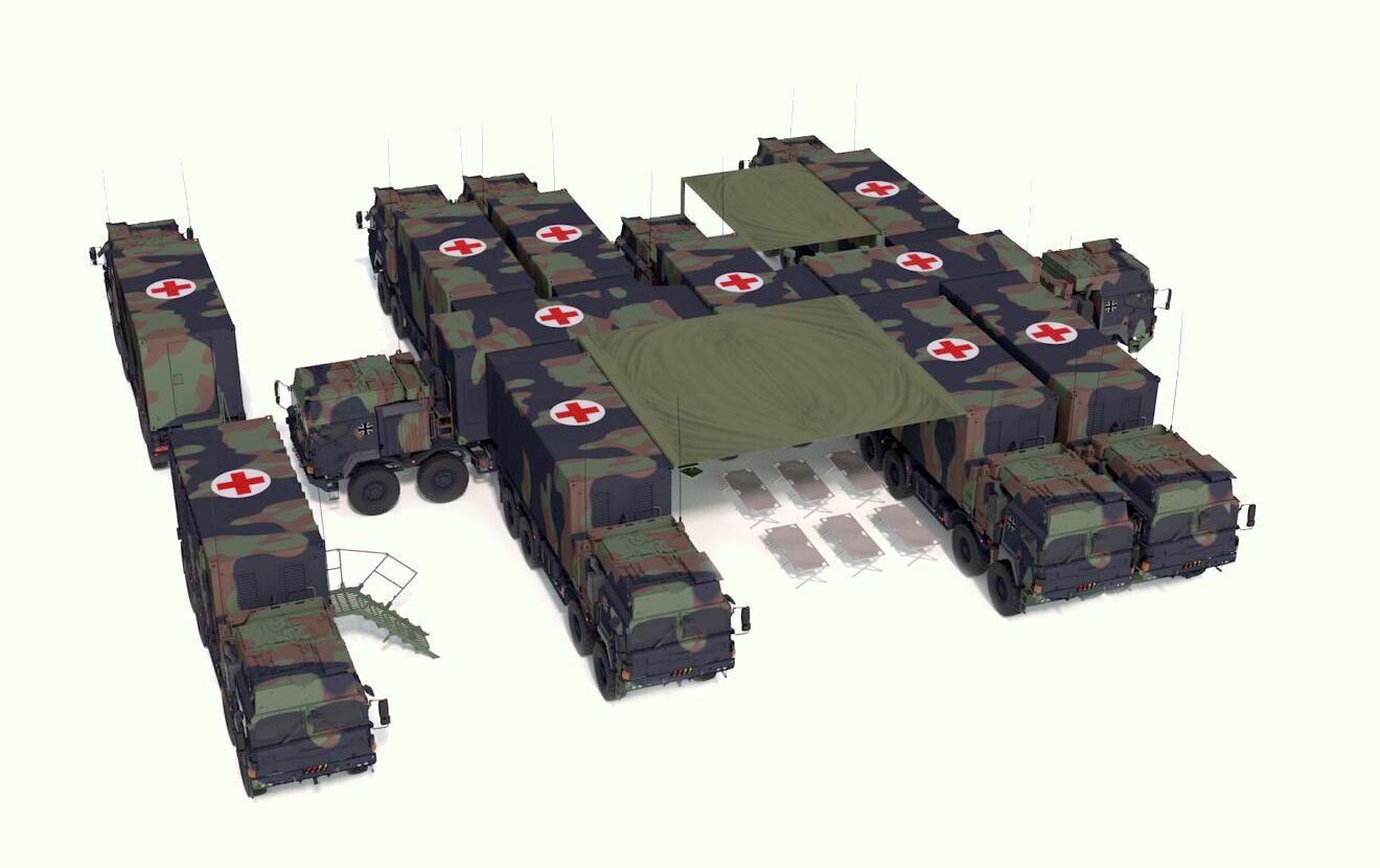 Каждое медицинское учреждение будет иметь в своем составе одиннадцать транспортных средств с соответствующими многофункциональными контейнерами. По данным Rheinmetall, контейнеры остаются на транспортных средствах во время нормальной работы. Это военные грузовики HX от Rheinmetall MAN Military Vehicles.