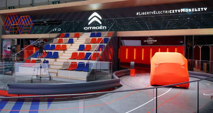 Стенд Citroen является пространством, которое объединяет дизайн и комфорт, знаменует собой празднование 100-летнего юбилея Марки, предлагает две контрастные зоны: La Maison Citroen – дань историческому прошлому и Comptoir Ami One – символ движения в будущее.