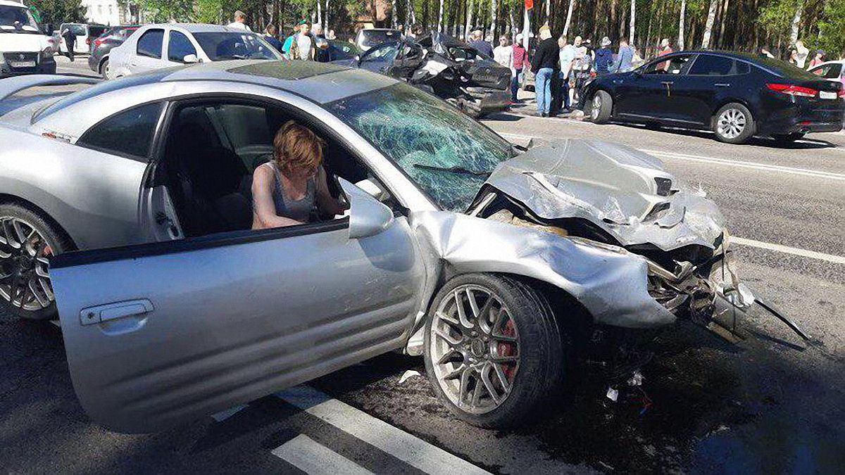 Как сообщает издание "За рулем", виновницей ДТП считается 34-летняя жительница города Домодедово, которая руководила спорткаром Mitsubishi Eclipse в состоянии сильного алкогольного опьянения. Ее поведение после аварии возмутило пострадавших и свидетелей: она спокойно расхаживала между разбитыми машинами, выражала недовольство поведением окружающих и даже пыталась закурить возле розплесканого на асфальте бензина.