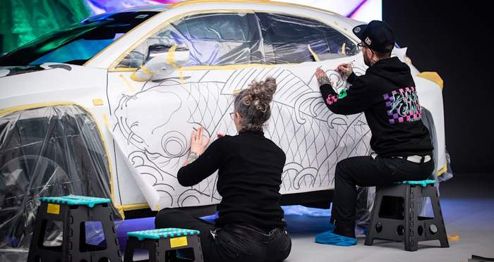 Мастер татуировок на теле человека Клавдия де Сабе сделала рисунок на Lexus UX по очень похожей на "человеческую" технологии. Для создания первого в мире рисунка-татуировки на автомобиле она использовала инструмент Dremel, подобный буру стоматолога.