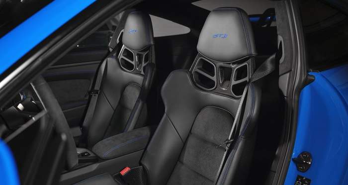 Версия GT3 имеет более широкий кузов и более крупные колеса, но вес нового GT3 остался на уровне предшественника. С механической трансмиссией он весит 1418 кило, а с коробкой передач PDK – 1435. Баланс веса обеспечивают передний капот из армированного углеродным волокном пластика, легкие стеклянные окна, оптимизированные тормозные диски, кованые легкосплавные колеса и крышка отсека задних сидений. Облегченная спортивная выхлопная система уменьшает вес еще на 10 килограммов. А выхлопные клапаны с электрической регулировкой гарантируют чрезвычайно эмоциональный звук и обеспечивают соответствие стандартам выбросов Euro 6d ISC FCM (EU6 AP).