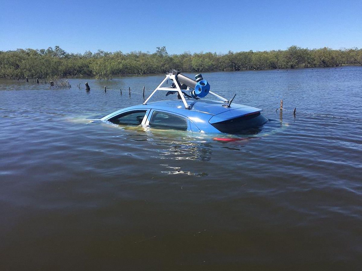 Происшествие случилось в Шлишер Каунти в штате Техас на хайвее 190. Ответственнен за него водители Google-кара. Он проигнорировал баррикаду, которая перекрывала проезд на затопленную из-за дождей дорогу, объехал ее и продолжил свою работу, однако и заметить не успел, как оказался “по уши” в воде.