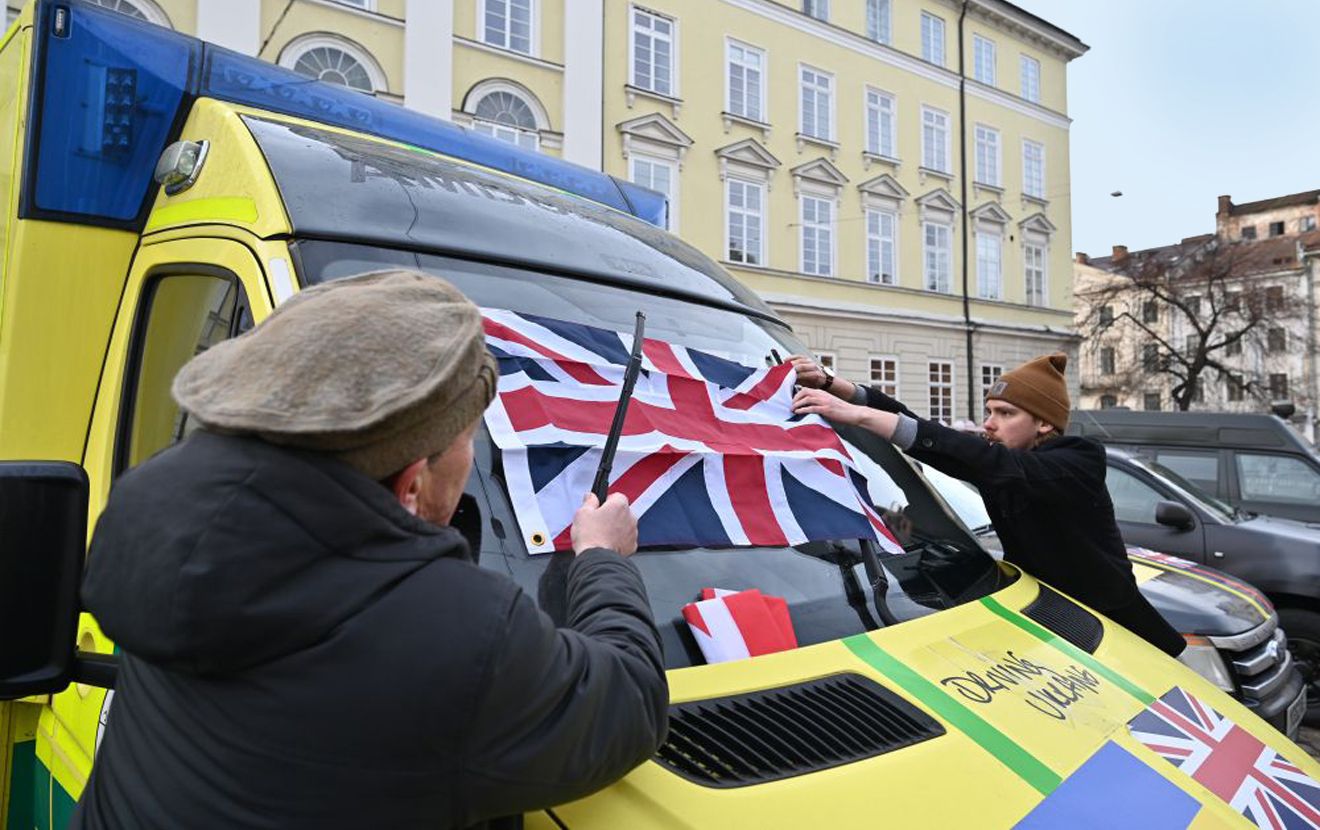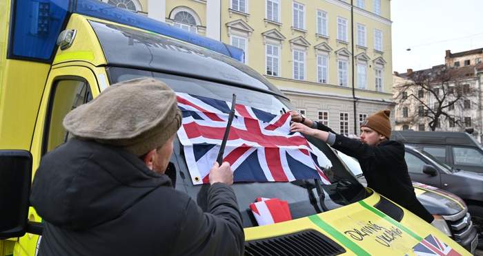 Британцы на передаче техники во Львове обозначили национальную принадлежность гуманитарного конвоя