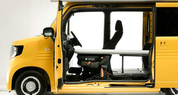 Наконец, последнее планирование кабины уплотняет кухонную зону справа от N-Van Compo (и, кажется, избавляет от раковины, которая входит в набор Style-one и Style-two), но сохраняет багажное пространство. Все три макета включают подушки, которые также превращают салон в спальное место.