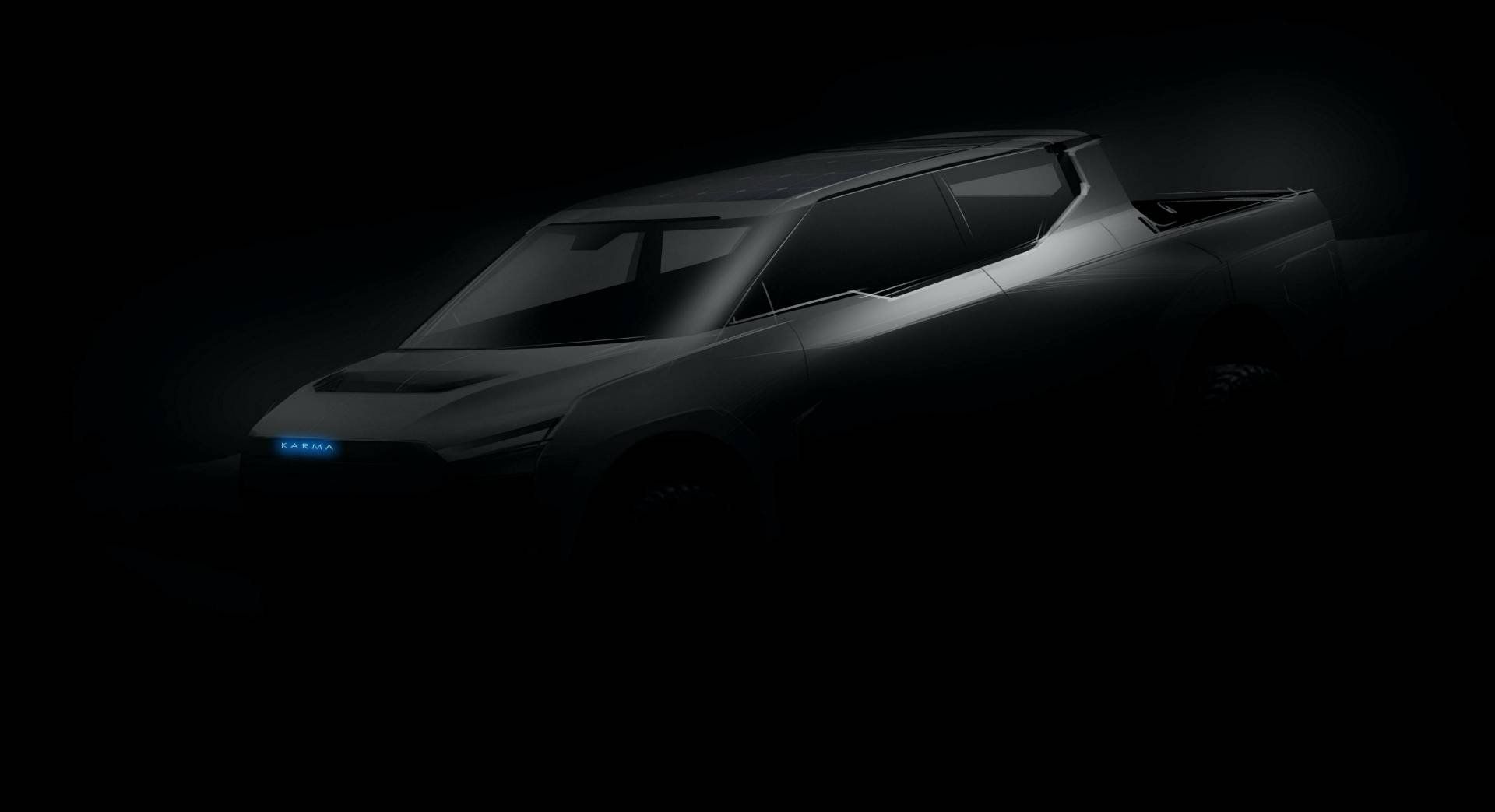 Единственное тизерное изображение демонстрирует пикап с двухдверной кабиной и небольшим кузовом. Скорее всего, платформа будет позволять варьировать границы кабины и кузова, поэтому будут и двухдверные пикапы с более вместительным грузовым отсеком. Короткий капот плавно перетекает в лобовое стекло, обеспечивая кабине особую форму. Также заметны солнечные панели на крыше пикапа – это фирменная черта автомобилей Karma.