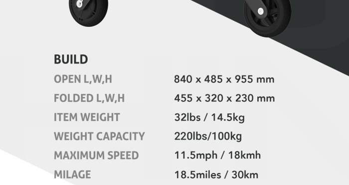 В сложенном виде "самокат с сиденьем" от "Сяомей" не больше листа бумаги формата АЗ. Точные габариты: 49x35x35 см. Да и весит немного – всего 14,5 кг. Максимальная скорость скутера – 18 км/ч. Запас хода – 30 км.