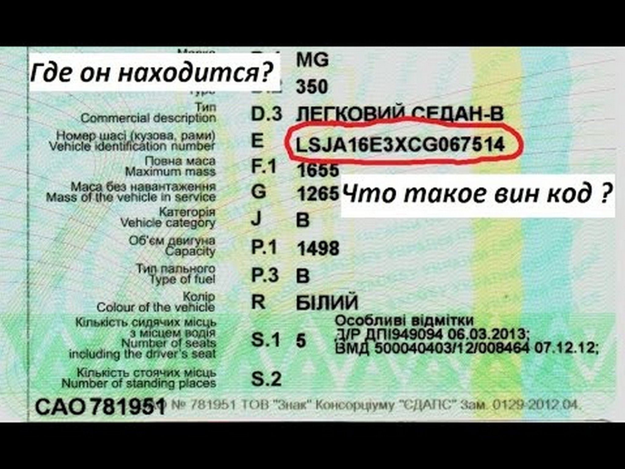 Стоит напомнить, что VIN-код это идентификационный номер транспортного средства, который является уникальным кодом, состоящим из 17 знаков. VIN-код указан в техпаспорте. Идентификационные номера наносятся на неразъемных составляющих кузова или шасси и на специально изготовленных номерных табличках (шильдиках). У всех современных автомобилей номер VIN располагается в левой верхней части инструментальной панели, видимой через ветровое стекло. Также его можно найти на левой передней стойке кузова.