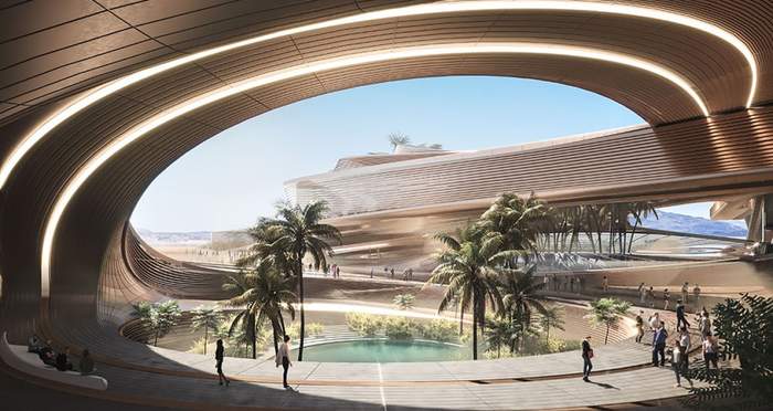 Оазис посреди пустыни обеспечит путешественников не только чистой водой и тенью, но и возможностью путешествовать на огромные расстояния за считанные минуты. Проект бюро Pada Labs переосмысливает транспортировку в формате экологически чистого, быстрого и безаварийного сообщения.