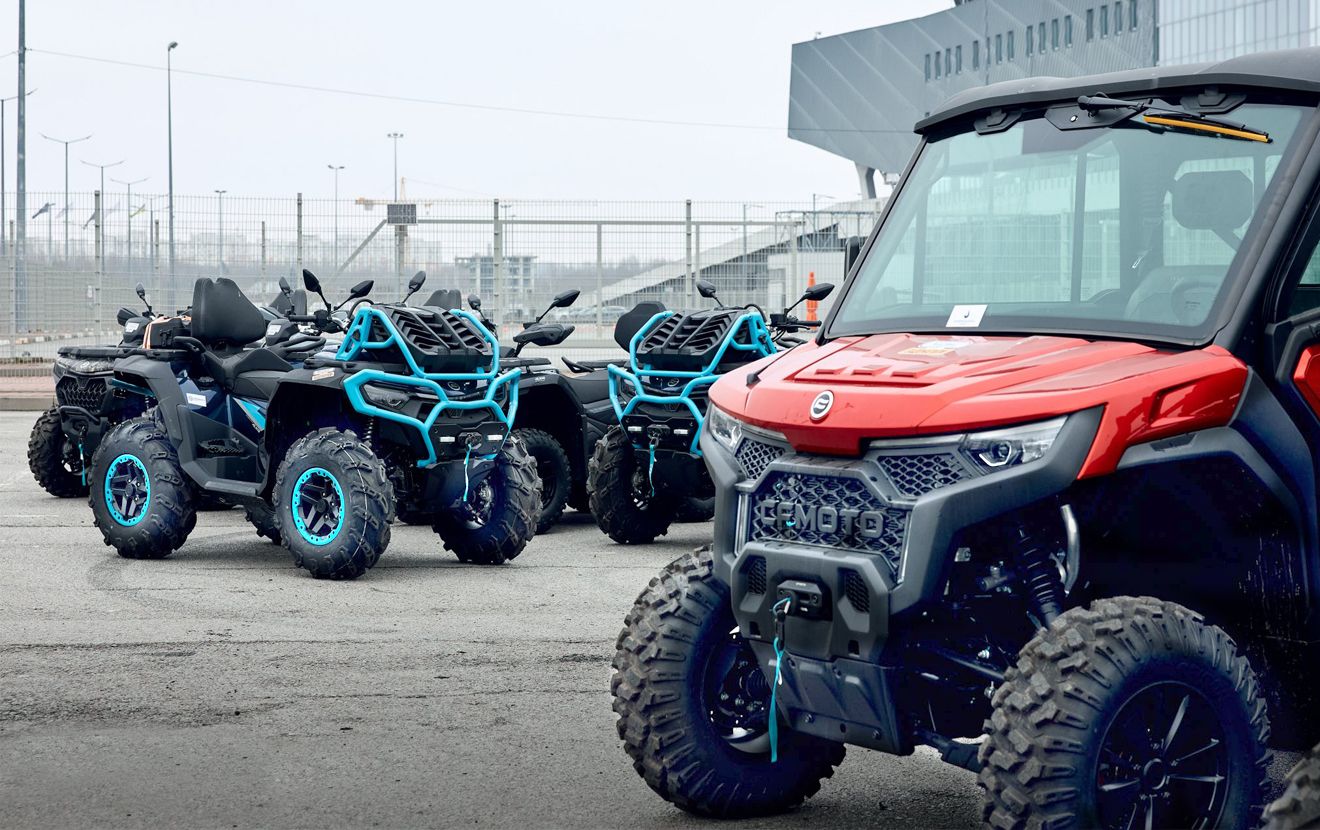 На фото также просматриваются менее мощные квадроциклы этого же бренда. Вероятнее всего там в момент передачи стояли CFMOTO CFORCE 500 EPS и CFORCE 450 L с силовыми агрегатами 34 и 30 лошадиных сил.