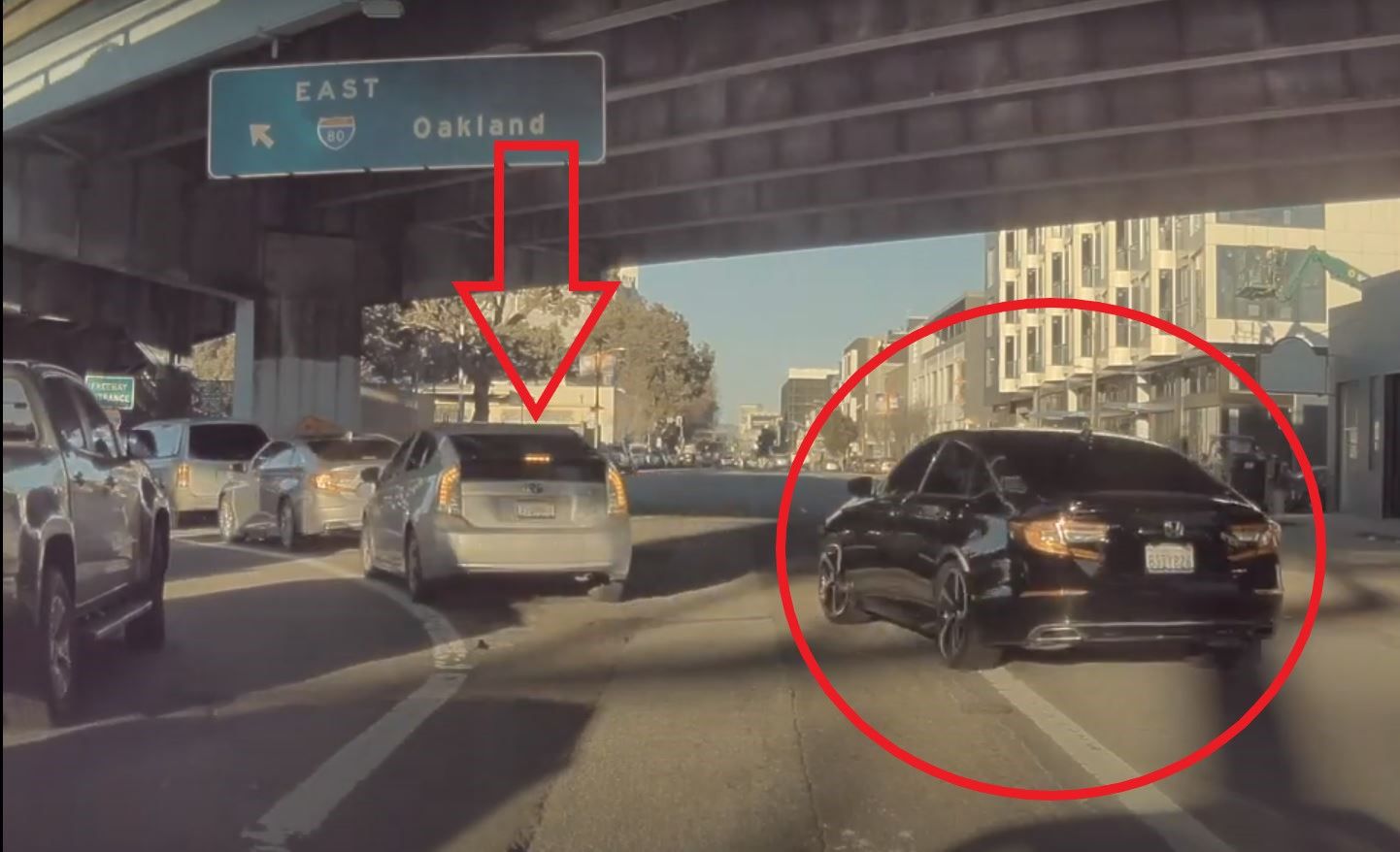 Серый Toyota Prius остановился на повороте для выезда на развязку, а сбоку от него пристроился черный Accord. Максимально приблизившись к Prius, черный автомобиль остановился, чтобы выпустить пассажира. За несколько секунд тот разбил заднее окно Prius и вытащил из машины дорогую видеотехнику. В следующее мгновение он вскочил обратно в Accord и злоумышленники скрылись с места преступления.