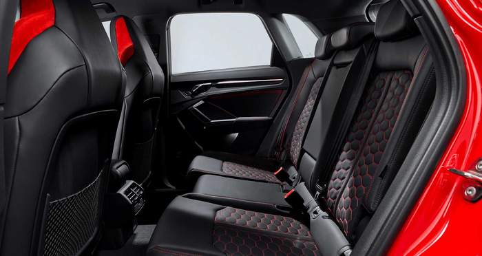 Традиционно, версии RS предусматривают не только улучшение производительности, но и эффектную внешность и богатый салон в спортивном стиле. Двойняшкам RS Q3 сделали новый обвес и затемненные детали экстерьера, 20-дюймовые колесные диски (с возможностью замены на 21-дюймовые), опциональный выпуск RS Sport с черными патрубками и пару особых оттенков – зеленый Kyalami Green и серый Nardo Grey. Внутреннее пространство отделано кожей наппа и алькантарой с прострочкой красной (или синей) нитью, присутствуют обязательные детали из алюминия и фирменные коврики.