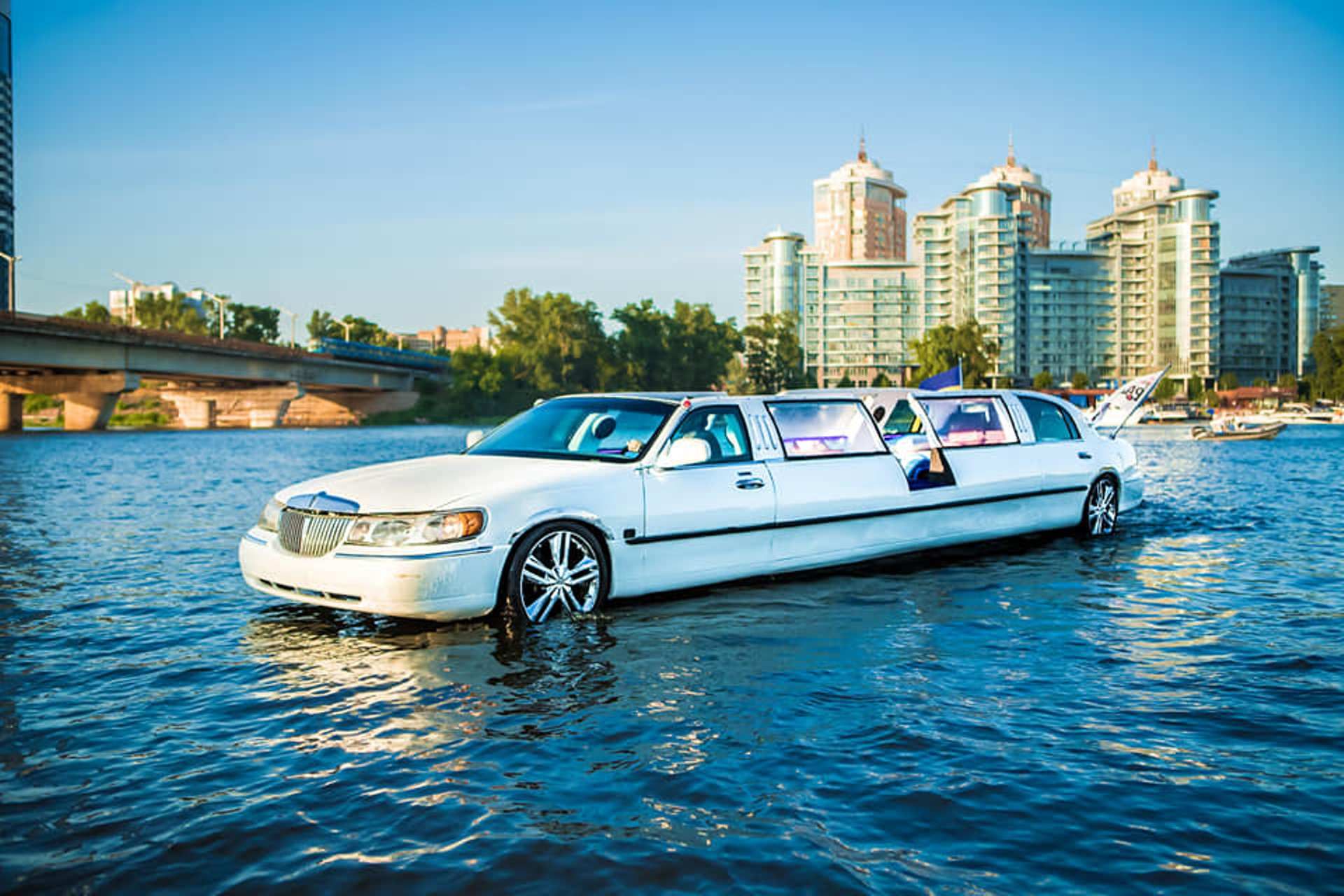 Кузов Lincoln Town Car со срезанной крышей установили на корпус катера. Интересно, что колеса сохранили, а в салоне остались родные руль и передняя панель.