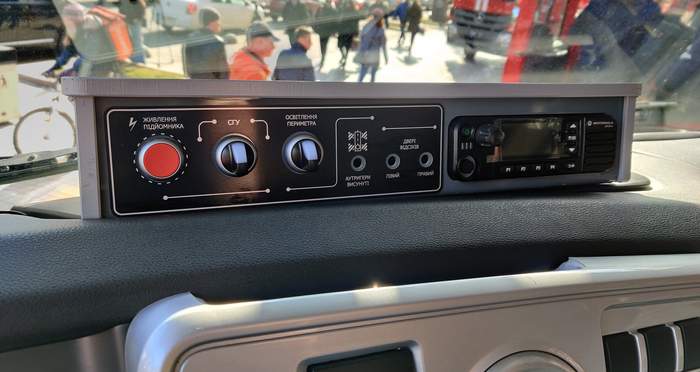 Все остальное – кузов надстройки, платформа оператора, напорные коммуникации, резервный моторизованный привод стрелы, лестницы, пульты управления и сама спасательная люлька – произведены в г. Киев. Как и окончательная сборка, и испытания.