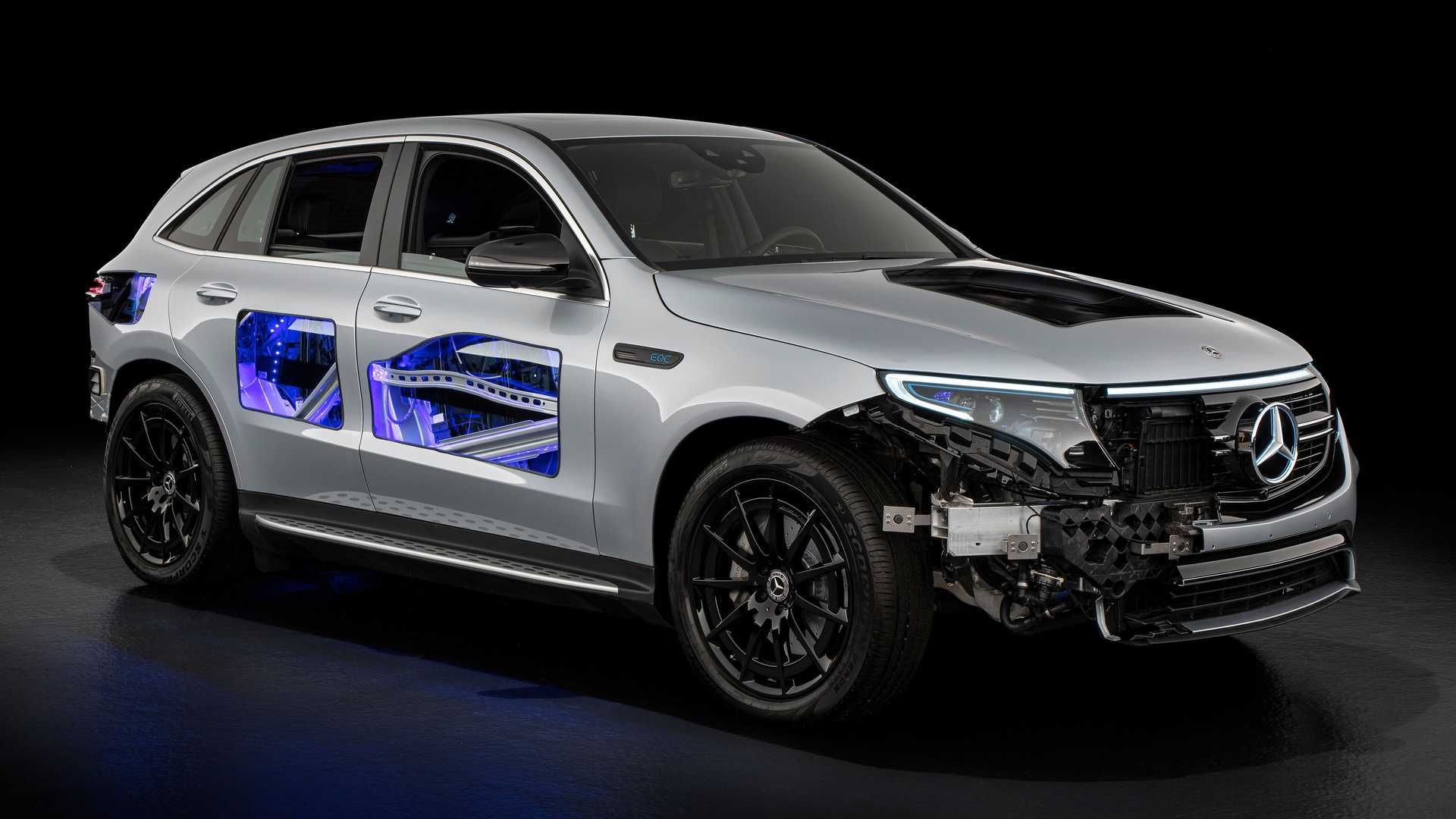 Разрезной Mercedes-Benz EQC создали 40 стажеров немецкой компании. За основу было взято предсерийный прототип электрического кроссовера EQC 400. Каждую деталь электрокара открыли глазу наблюдателя, показывая, из чего и как складывается тот или иной блок. Причем с объяснениями, которые демонстрируются на экране мультимедийного центра.