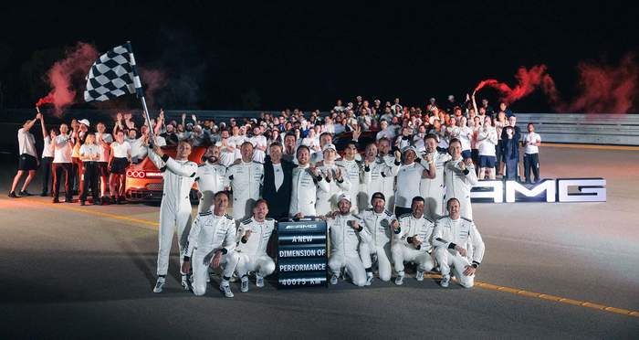 Как пишет Motor1, на самом деле Mercedes-AMG проводила испытания на трассе Нардо в Италии. Для установления рекорда автопроизводитель создал специальную команду, включавшую 17 гонщиков, в частности действующего гонщика Формула 1 Джорджа Рассела.