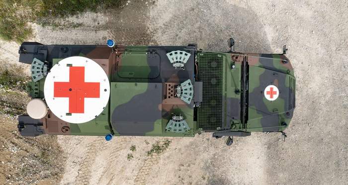 Дебютный для немецкой армии медицинский автомобиль со средней защитой (mgSanKfz) предназначен для оказания помощи раненым на передовой и защищенной медицинской эвакуации. Это – высокомобильная, многоцелевая бронированная машина, специально сконфигурированная для передовой медицинской поддержки на поле боя.