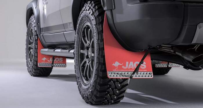Комплекты также включают набор широких удлинителей крыльев за ¥92 400 ($598) и черные боковые подножки за ¥132 000 ($854). Кроме того, доступен набор 18-дюймовых легкосплавных дисков Jaos Tribe Cross производства Enkei. Новые колеса доступны в черном и золотом цветах и могут быть обуты в цепкие грязевые шины Yokohama Open Country. Наконец, набор брызговиков Jaos черного или красного цвета доступен за ¥35 200 ($228), хотя Toyota также предлагает альтернативы под брендом Land Cruiser.