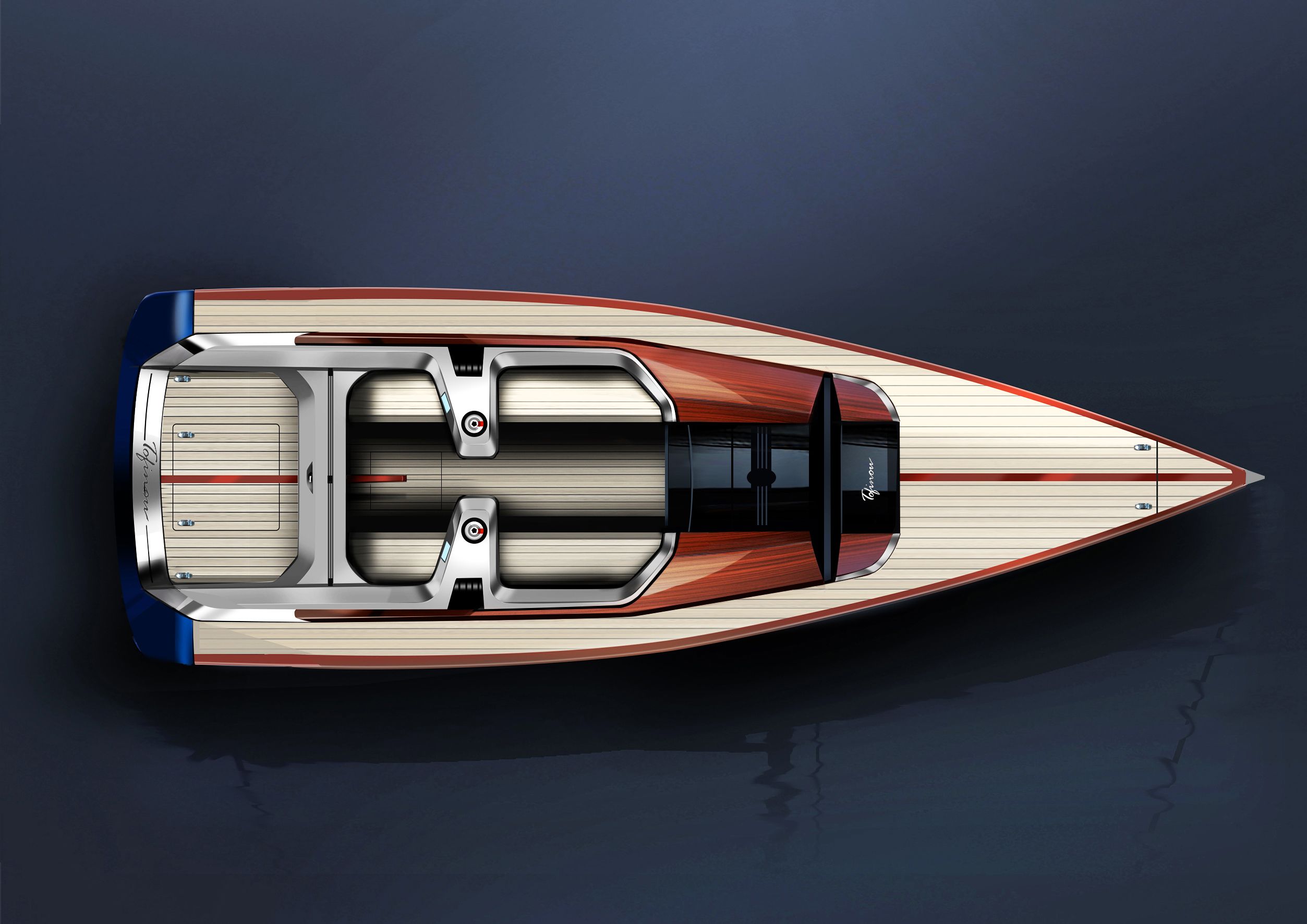 Дизайнеры Peugeot разработали сбалансированный стиль, в котором сочетаются классика и современные технологии. Tofinou 9.7 имеет эргономичный “кокпит” или капитанский мостик с парой защищенных от воды сенсорных экранов и всеми элементами управления под рукой.