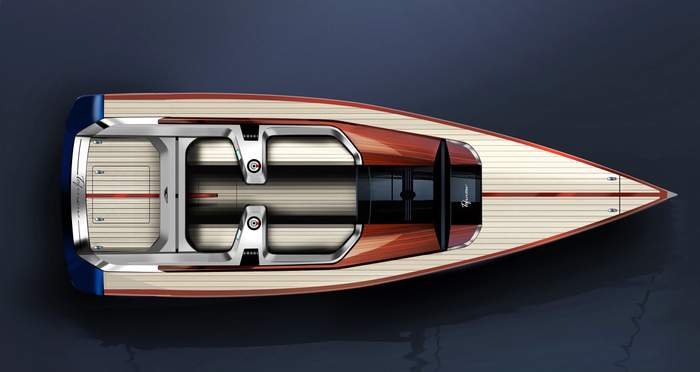 Яхта имеет классические формы с легкими и простыми линиями, а подчеркивают стиль благородные материалы отделки: лакированное красное дерево, нержавеющая сталь и хром. Лодка адаптируется ко всем водным объектам благодаря переменной системе киля, которая может быть фиксированной, поворотной или подъемной.
